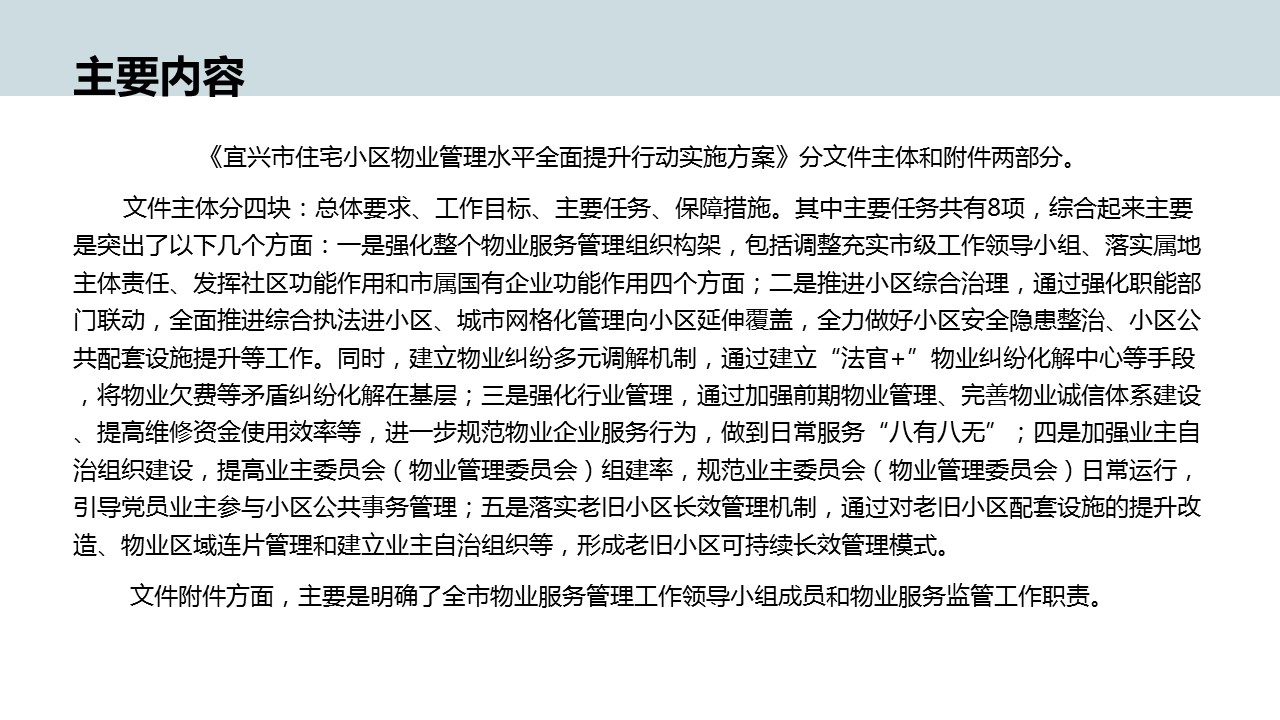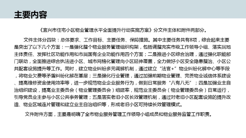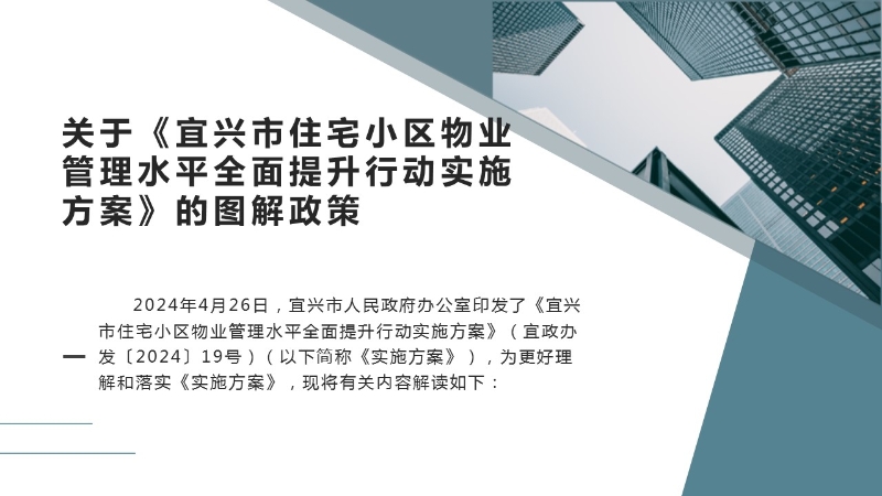 | 内容概况 | 关于《宜兴市住宅小区物业管理水平全面提升行动实施方案》的图解政策 | ||||