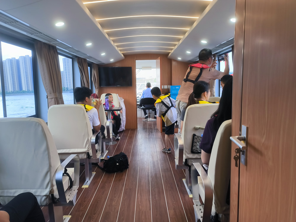 在船舱里面,一堂“移动的航道课”同步开启,港航中心工作人员围绕航道建设、航道沿岸工业企业、宜兴港三块内容,以芜申运河航道为切入点,以点带面,深入浅出地讲解了航标布设、高等级航道建设、宜兴港码头建设等工作内容,生动阐述了航道安全畅通对航运发展、区域经济的重要意义,详实的案例与通俗的语言,让在场人员对航道事业有了系统性认知。