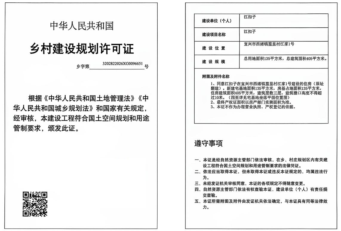 乡村建设规划许可证公示(江扣子)