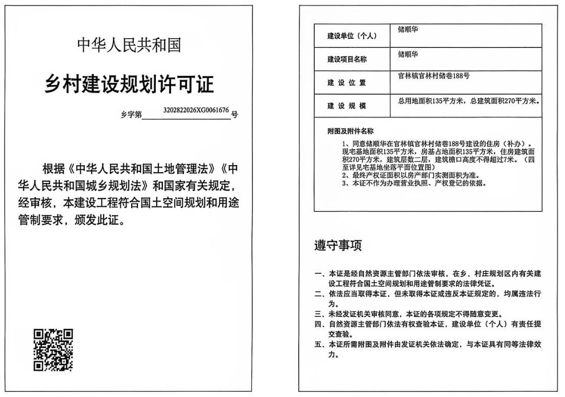 乡村建设规划许可证公示(储顺华)